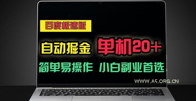 2024-06-27 网络技术 / 网赚项目 / 自媒体 / 资源教程 百度极速版自动掘金,单机单账号每天稳定20+,可多机矩阵,小白首选副业 by 三五一十八 最近,很多人都在问有没有简单易操作的副业项目,尤其是那些上班有空闲时间的人。百度极速版自动挂机项目就是一个适合他们的选择,通过自动刷视频和阅读小说来赚取金币,再将金币兑换成现金,单机每日收益可达20元左右。 通过百度极速版App自动刷视频和阅读小说赚取大量金币,金币可以兑换成现金,提现秒到。此项目无需复杂操作,单机日收益在20元左右,而且可以通过多台设备、多账号来放大收益。 课目程录: 1、项目介绍 2、准备工作 3、项目实操 4、注意事项