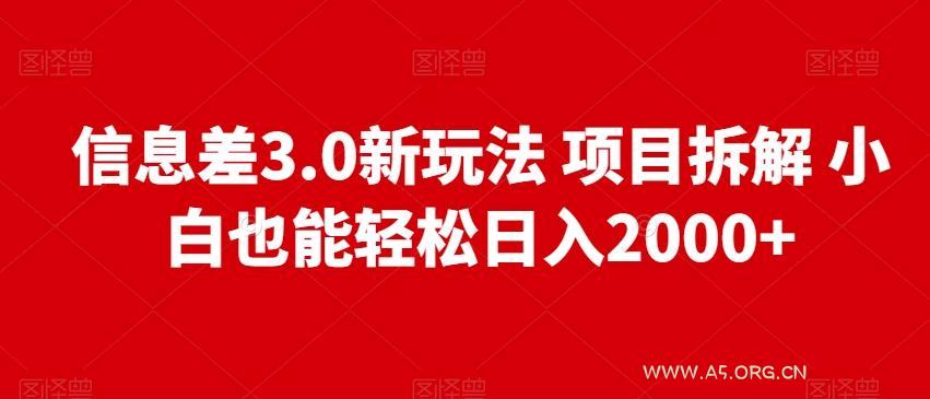 2024-01-04 新媒体运营 / 网赚项目 信息差3.0新玩法项目拆解小白也能轻松日入2000+ by 三五一十八 信息差3.0新玩法项目拆解小白也能轻松日入2000+ 项目简介:今天给大家分享信息差的新玩法,流量是非常火爆的,操作方法也非常简单,看完教程,小白即可操作,单日收益2000+,零成本零门槛