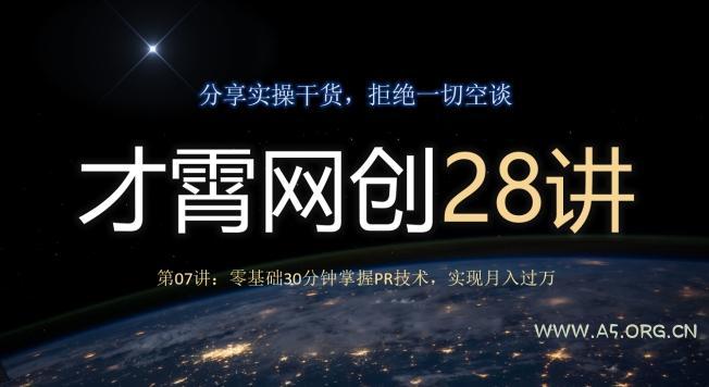 2023-11-25 新媒体运营 / 网赚项目 才霄网创28讲第07讲:零基础30分钟掌握PR技术,实现月入过万 by 三五一十八 才霄网创28讲第第07讲:零基础30分钟掌握PR技术,实现月入过万 这一讲也是比较基础的课程之一,详细演示了利用PR对视频进行剪辑的一些操作,学完这些基本操作,视频剪辑对于你来说不再是个问题,主要目的在于帮助一些新手朋友掌握PR技术,为未来的项目操作打下基础!