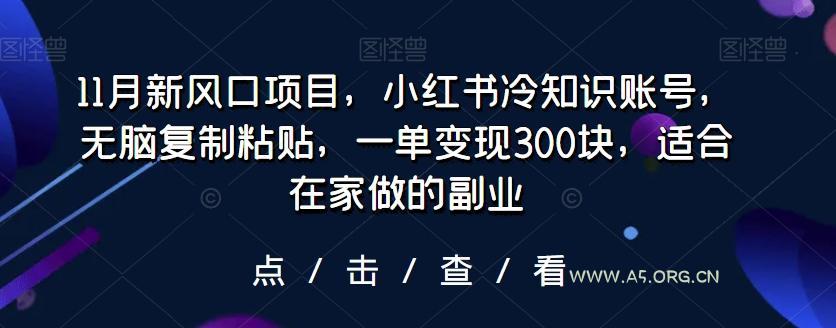 11月新风口项目,小红书冷知识账号,无脑复制粘贴,一单变现300块,适合在家做的副业
