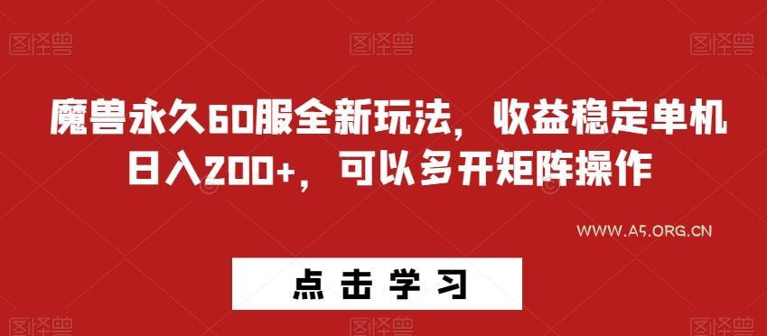 2023-11-25 新媒体运营 / 网赚项目 魔兽永久60服全新玩法,收益稳定单机日入200+,可以多开矩阵操作 by 三五一十八 魔兽永久60服全新玩法,收益稳定单机日入200+,可以多开矩阵操作 通过电脑搭配科技,全自动脚本操作打金搬砖,电脑可24小时运行, 多开多得,一台电脑可开5个账号,一个账号一天50+左右。 课程里面包含了搬砖教程和脚本下载链接。