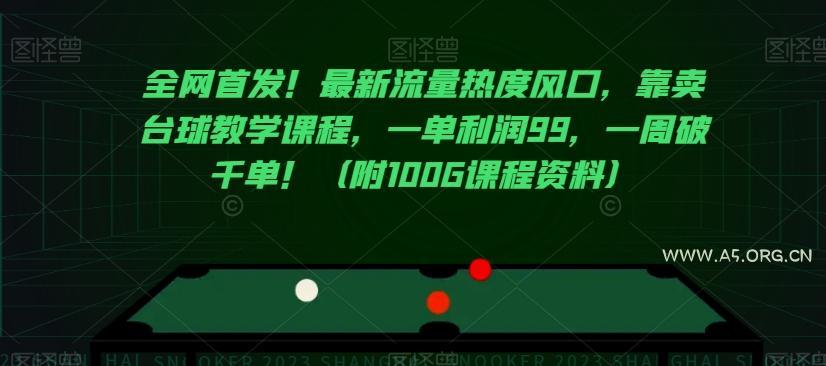 全网首发!最新流量热度风口,靠卖台球教学课程,一单利润99,一周破千单!(附100G课程资料)