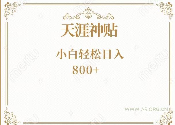 天涯神贴再现江湖,入门门槛极低,一部手机就可操作,小白轻松日入800元!