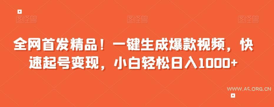 2023-12-26 新媒体运营 / 网赚项目 全网首发精品!一键生成爆款视频,快速起号变现,小白轻松日入1000+【揭秘】 by 三五一十八 全网首发精品!一键生成爆款视频,快速起号变现,小白轻松日入1000+【揭秘】 项目介绍: 今天分享的项目是一键生成原创爆款视频,快速起号变现,操作简单,用户一刷就停不下来