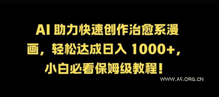 2024-10-02 AI技术 / 新媒体运营 AI 助力快速创作治愈系漫画,轻松达成日入几张,小白必看保姆级教程! by 三五一十八 AI 助力快速创作治愈系漫画,轻松达成日入几张,小白必看保姆级教程! 项目介绍:随着社会压力的增加,越来越多的人追求治愈系的内容。在抖音上,治愈系的视频异常火爆,吸引了大量粉丝的关注。我们通过AI技术生成治愈漫画,几乎一分钟一条原创视频,因此我们抓住了这段流量期,并准备利用它轻松赚钱。