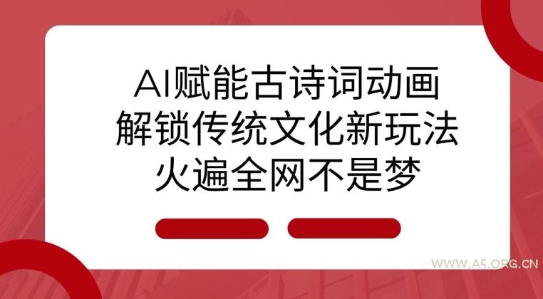 2024-12-19 AI技术 / 新媒体运营 AI 赋能古诗词动画:解锁传统文化新玩法,火遍全网不是梦! by 三五一十八 AI 赋能古诗词动画:解锁传统文化新玩法,火遍全网不是梦! 在这个科技日新月异的时代,我们如何将古老而深邃的古诗词与现代AI技术相结合,让它们以全新的面貌呈现在世人面前?今天,我将带大家一起探索一个创意项目,就是利用AI结合古诗词生成静态图片,让古诗词“活”起来,并探讨其变现潜力。 项目大纲: 01、项目介绍 02、前期工作 03、实操演示以及变现思路