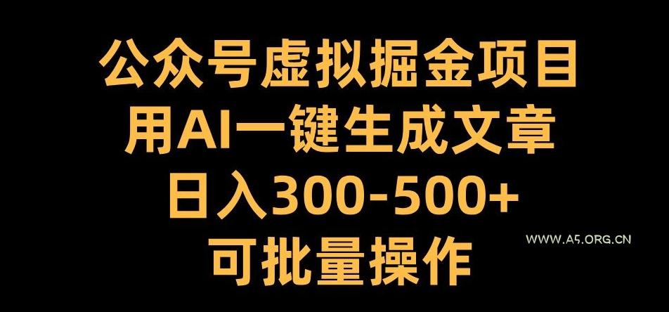 2024-11-04 AI技术 / 新媒体运营 公众号虚拟掘金项目,用AI一键生成文章,日入300+可批量操作【揭秘】 by 三五一十八 公众号虚拟掘金项目,用AI一键生成文章,日入300+可批量操作【揭秘】 通过公众号分享自媒体工具,进行网盘拉新或者私域变现 做项目的时候,我们经常需要找一些软件工具比如视频去水印软件、视频去字幕软件、配音软件、格式转换器等等可以说,这些都是我们做项目的必备工具。 我们的同行(创业粉),是不是也需要这些丅具呢?他们中的大多数人,在需要某个软件的时候,通常都会到公众号搜索查找,如果我们把这些软件发布到公众号,就能截流到这些人。
