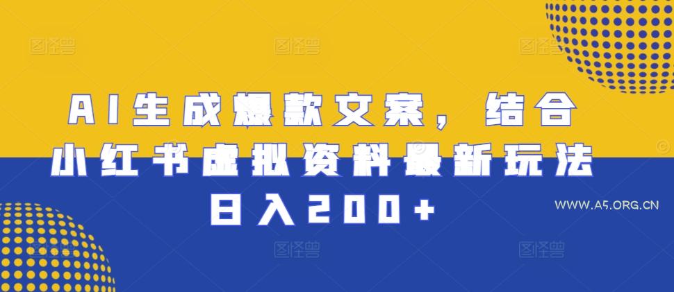 2024-11-16 AI技术 / 新媒体运营 AI生成爆款文案,结合小红书虚拟资料最新玩法日入200+【揭秘】 by 三五一十八 AI生成爆款文案,结合小红书虚拟资料最新玩法日入200+【揭秘】 项目介绍: 目前,市面上各种的AI工具层出不穷,我们可以通过最新的AI工具快速生成爆款文案,能够节省大量的时间和人力成本,并结合小红书的学习资料项目形成最新玩法。小红书卖虚拟资料是一个可落地且比较稳定的项目,通过引流私域来完成项目的变现。对此,我为大家专门整理了小学学习资料和初中九年级学习资料,并且项目后期熟练后也可以进行矩阵放大操作,进一步扩大收益。