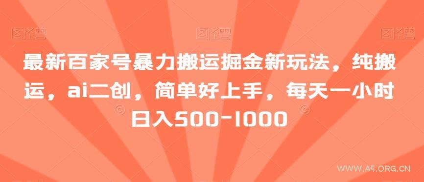最新百家号暴力搬运掘金新玩法,纯搬运,ai二创,简单好上手,每天一小时日入500-1000【揭秘】