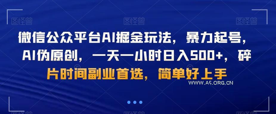 微信公众平台AI掘金玩法,暴力起号,AI伪原创,一天一小时日入500+,碎片时间副业首选,简单好上手