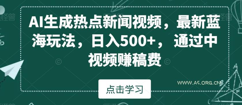 2024-01-22 AI技术 / 新媒体运营 AI生成热点新闻视频,最新蓝海玩法,日入500+,通过中视频赚稿费【揭秘】 by 三五一十八 AI生成热点新闻视频,最新蓝海玩法,日入500+,通过中视频赚稿费【揭秘】 项目介绍:用AI机器人生成视频,通过中视频计划赚稿费,这个项目到底有没有搞头?还真别说啊,真的就有人这么干了,每天中视频的收益并不比打工送外卖差,关键是利用AI一分钟就能快速生成一条原创视频,全程还不需要我们露脸,拍视频和剪辑AI都能帮我们全自动完成。