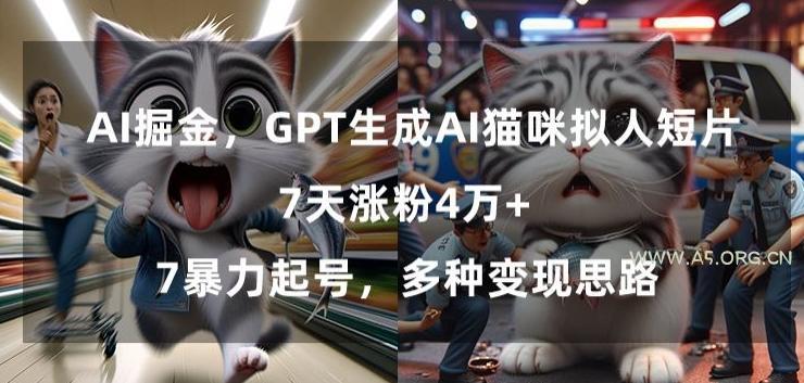 2024-02-25 AI技术 / 新媒体运营 GPT生成AI猫咪拟人短片,7天涨粉4万+,暴力起号,多种变现思路【揭秘】 by 三五一十八 GPT生成AI猫咪拟人短片,7天涨粉4万+,暴力起号,多种变现思路【揭秘】 今天分享的是目前很火的AI猫咪拟人短片,通过chatgpt4.0生成,涨粉起号超快,提供大家多种变现思路,让小白也能轻松掌握