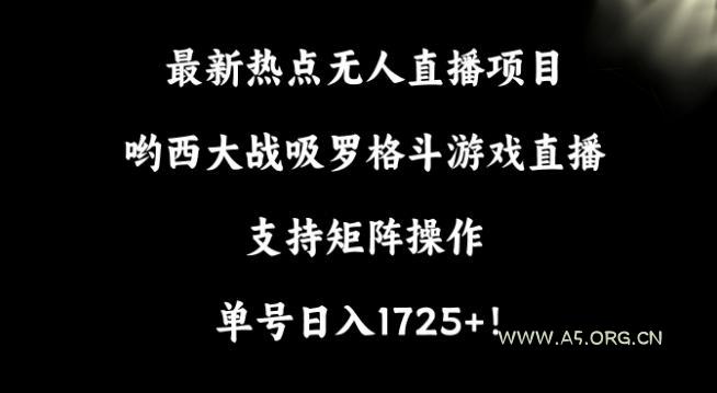 2024-02-22 新媒体运营 / 直播技巧 最新热点无人直播项目,哟西大战吸罗格斗游戏直播,支持矩阵操作,单号日入1725+【揭秘】 by 三五一十八 最新热点无人直播项目,哟西大战吸罗格斗游戏直播,支持矩阵操作,单号日入1725+【揭秘】 项目介绍: 最近大家都知道这个哟西的事情,流量也是非常的大,所以今天我们带来的这个项目流量完全是不用愁的,收益也是不低,最后还是那句话,项目无大小,实践出真知!