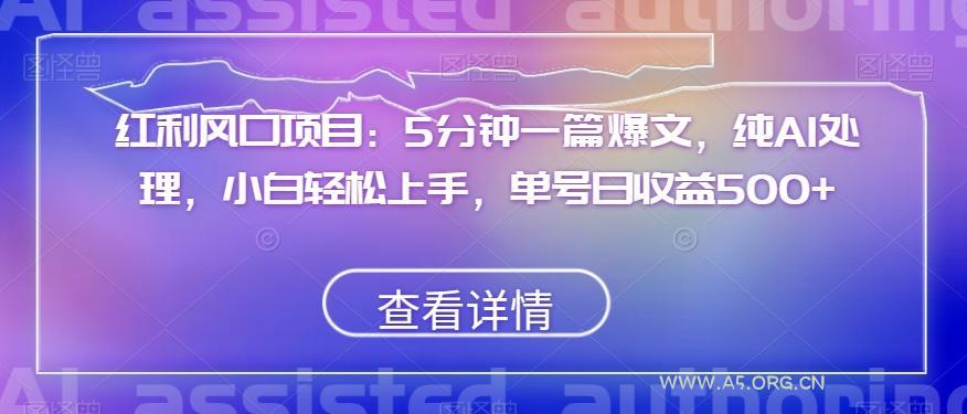 红利风口项目:5分钟一篇爆文,纯AI处理,小白轻松上手,单号日收益500+【揭秘】