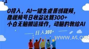 0投入,AI一键生成原创视频,撸视频号日收益达到300+小白无脑搬运操作,动脑的教给AI【揭秘】