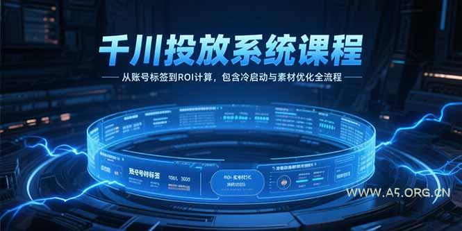 千川投放系统课程,从账号标签到ROI计算,包含冷启动与素材优化全流程