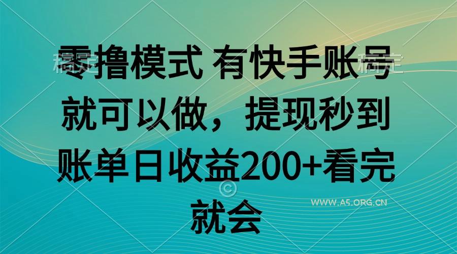 零撸模式 有快手就可以 任务无上限 提现秒到账