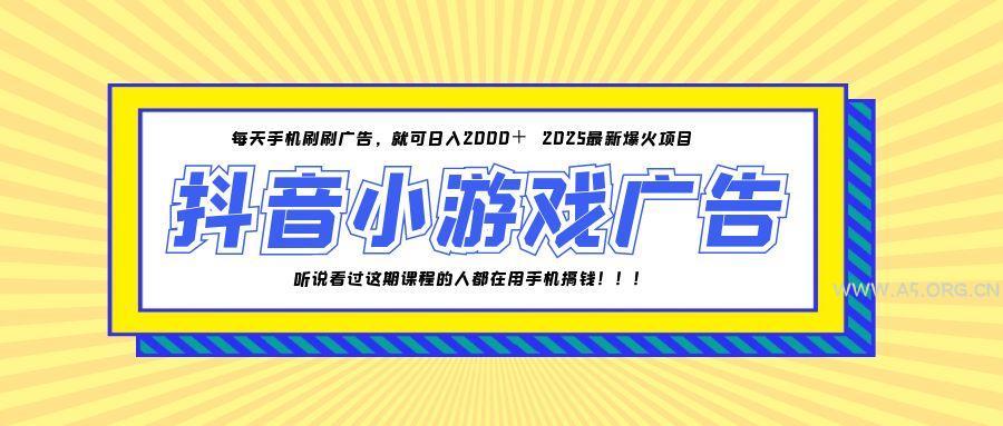 2025-05-28 自媒体 25年爆火的抖音小游戏项目,一部手机日入2000+ by 三五一十八 简介,抖音小游戏,一台手机日入2000+,通过广告+内购的双轮驱动模式,单日可产值2000+ 收益相对来说非常可观。