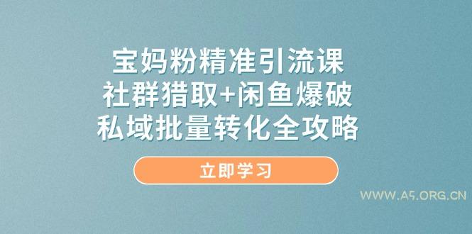 2025-05-19 私域引流 / 自媒体 宝妈粉精准引流课,社群猎取+闲鱼爆破,私域批量转化全攻略 by 三五一十八 课程系统讲解宝妈粉精准引流方法论,涵盖社群猎取、诱饵设计、闲鱼爆破、IP价值输出及私域批量运营,通过高转化技巧实现本地母婴粉引流裂变,打造可持续变现的私域流量池。 课程目录: 1-第1课-宝妈社群猎取术(上) 2-第2课-宝妈社群猎取术(下) 3-第3课-打造高诱惑宝妈粉诱饵 4-第4课、引流种子用户-宝妈社群篇 5-第5课、引流80后本地宝妈粉-闲鱼爆破篇 6-第6课、超高转化的核心技巧 7-第7课、宝妈ip价值持续输出 8-第8课-宝妈私域流量-企业批量化操作