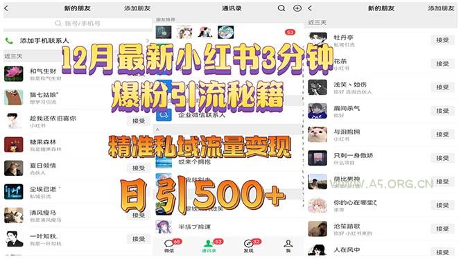 12月最新小红书3分钟爆粉引流秘籍 精准私域流量变现 日引500+