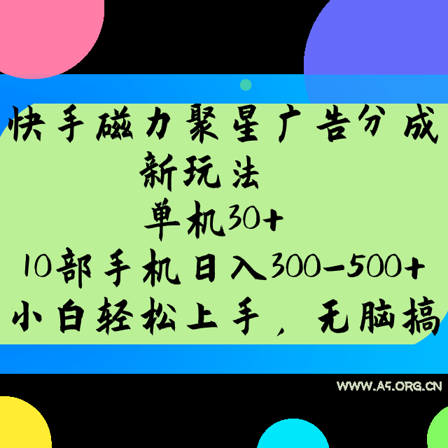 2025-02-16 自媒体 快手磁力聚星广告分成新玩法,单机30+,10部手机日入300-500+ by 三五一十八 通过无脑观看小游戏广告来赚取收益。若单人单机操作,大概能获得 30 至 50 元的收入,若在相同时间有 10 部手机同时运作,一天能够赚取 300 到 500 元,简单无脑,非常适合小白的一个项目。