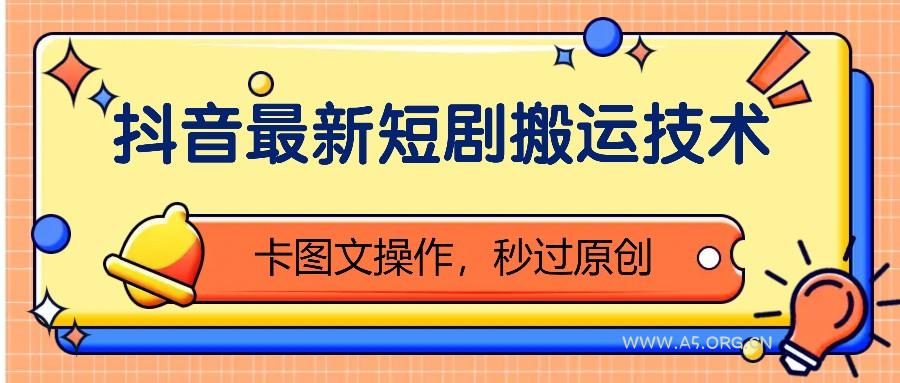 2024-11-13 自媒体 抖音最新短剧搬运技术,卡图文操作,秒过原创! by 三五一十八 抖音最新短剧搬运技术,卡图文操作,秒过原创 本期所更新的是抖音短剧推广的最新搬运技术,效果可以说非常不错,目前很多短剧平台的头部玩家都是用的这种方法,很容易爆作品,可以说是短剧推广玩家的福音 操作很简单的,三分钟就能学会的卡图文方式,方法是通用的。如果正在做抖音起号或者搬运的小伙伴可以直接套用,极速涨粉